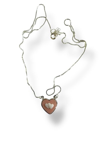 Collana in argento 925 con cuoricino di cammeo rosa “ 2 cuoricini” . Lunghezza collana cm 43 + 3.