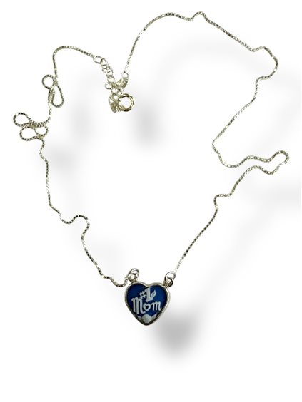Collana in argento 925 con cuoricino di cammeo blu “I love Mum” Lunghezza collana cm 43 + 3.