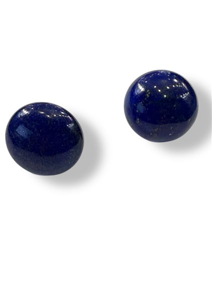 Orecchini bottoni di lapislazzuli con perno e farfallina in argento. Diametro mm 19 c.ca.